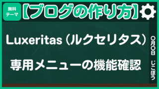 【ブログの作り方】Luxeritas(ルクセリタス)専用メニューでカスタマイズ可能な項目と機能を確認 Luxeritas(ルクセリタス)をインストールして有効化すると、左側のメニュー欄に「Luxeritas」という新しい項目が追加されます。WordPress(ワードプレス)本体に備わっている機能や設定項目に加え、Luxeritas 専用メニ... ブログの作り方